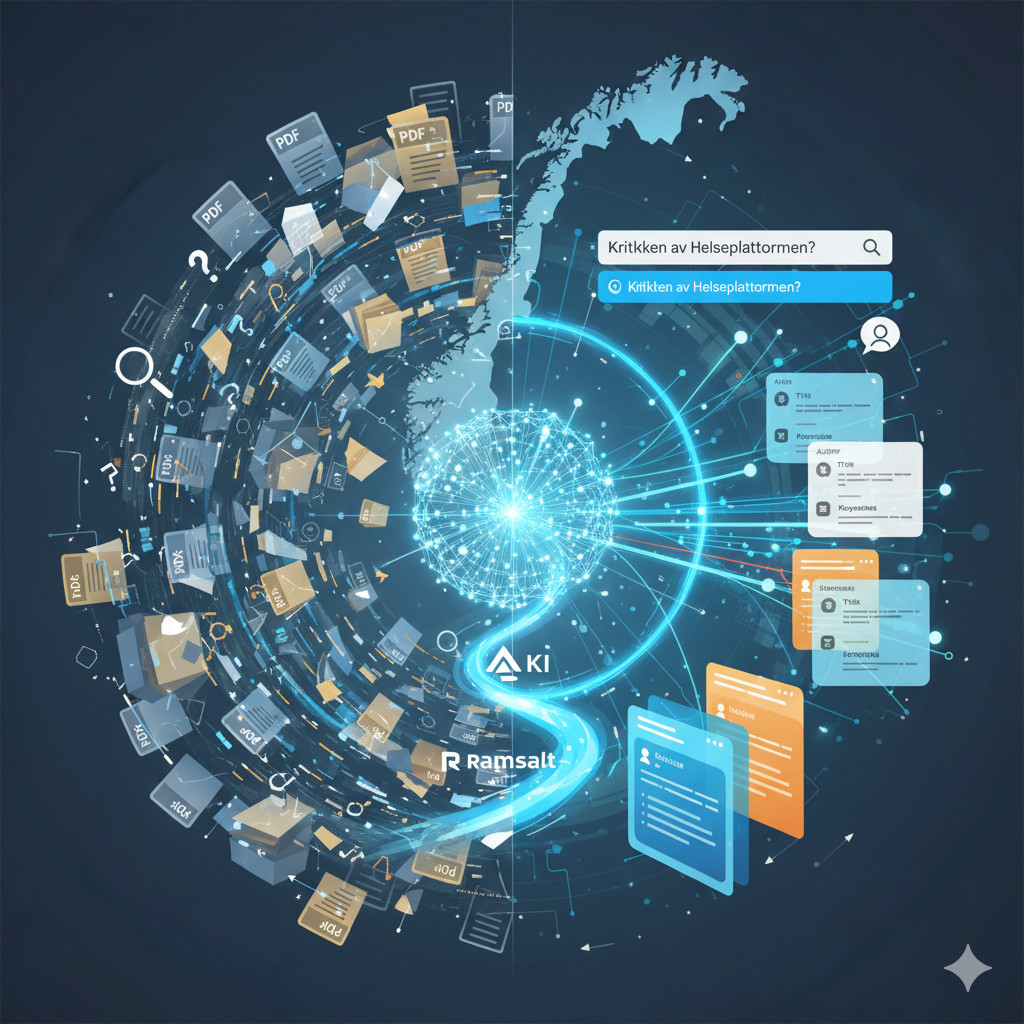 Offentlig sektor flyter over av kunnskap – fra utredninger til evalueringer. Utfordringen har lenge vært å finne denne informasjonen i havet av PDF-er. Ramsalt har vært sentral i utviklingen av Kudos – en nasjonal kunnskapsportal. Ved å implementere banebrytende KI-basert dokumentanalyse, har vi bidratt til å snu en kaotisk dokumentbase til en gullgruve av søkbar innsikt.
